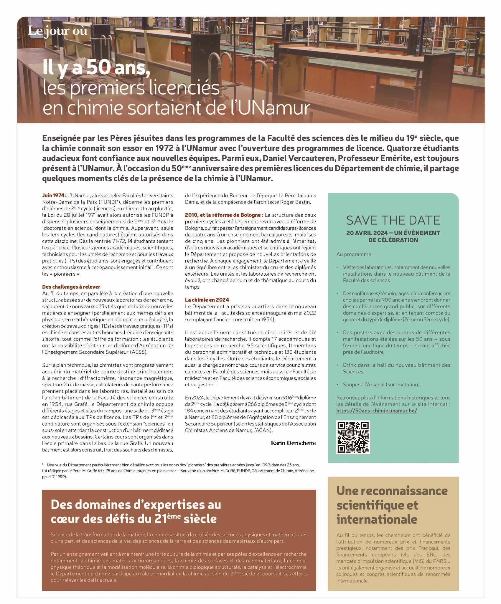La chimie à l'UNamur, cinq lustres et dix huit décennies